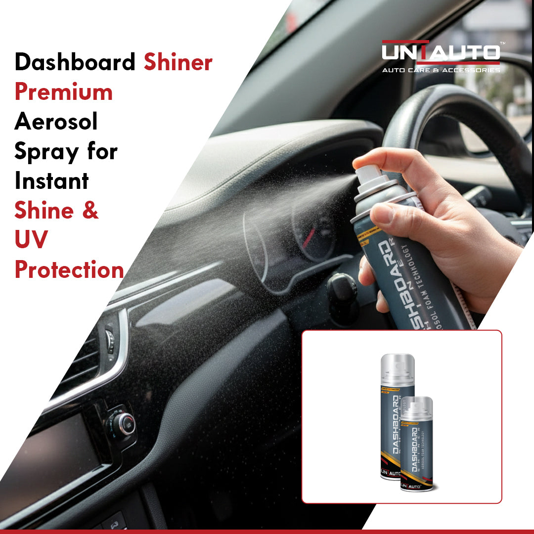 Give your car's interior a showroom-fresh look with Uniauto Dashboard Shiner, powered by Advanced Aerosol Technology for quick, effortless, and even application. This high-performance spray is specially formulated to clean, shine, and protect your dashboard and other plastic or vinyl surfaces—leaving behind a rich, non-greasy finish that lasts.