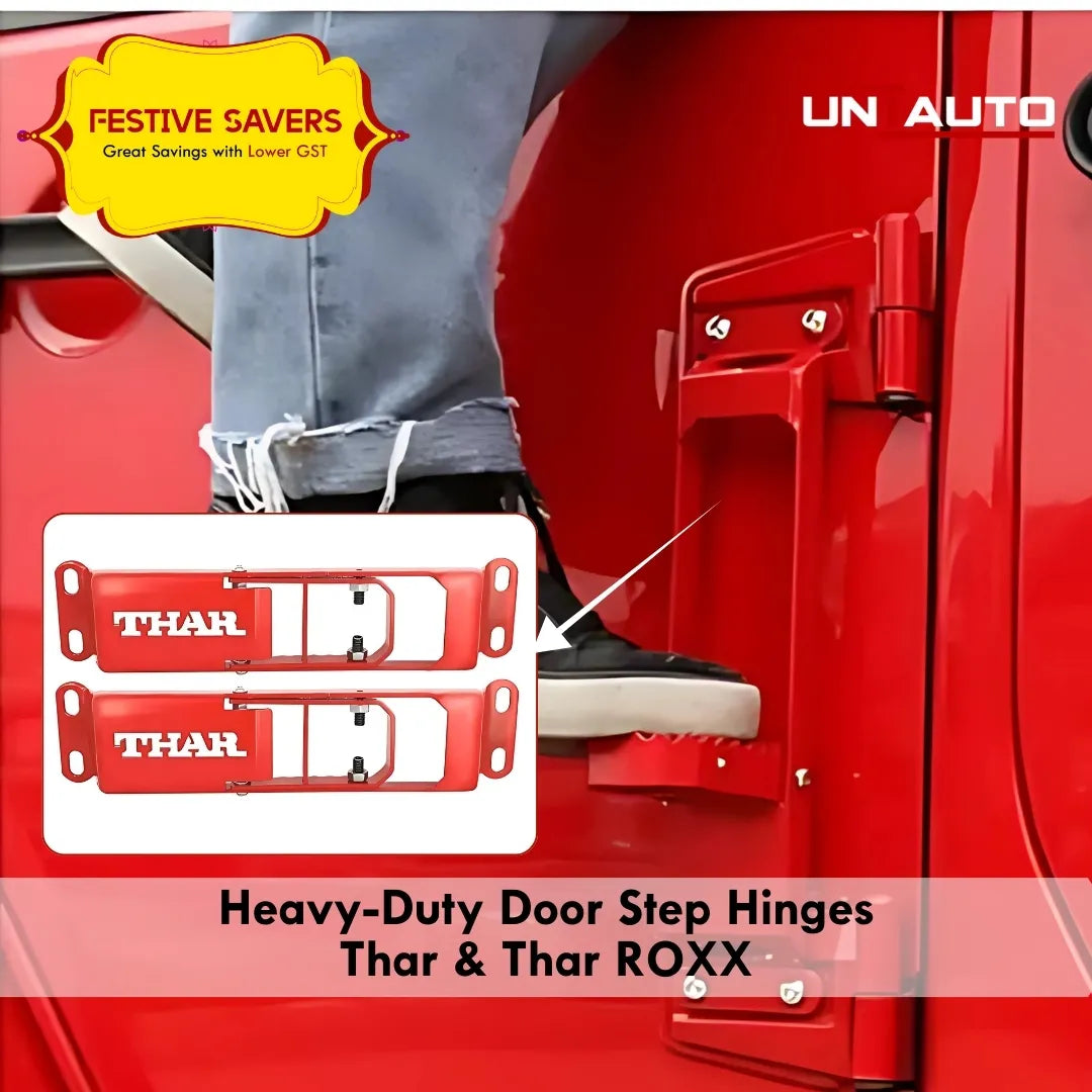 Whether you're accessing your roof rack or simply looking to enjoy a better vantage point, this door step hinge is the perfect upgrade for your Mahindra Thar, combining practicality, durability, and style in one comprehensive package.
