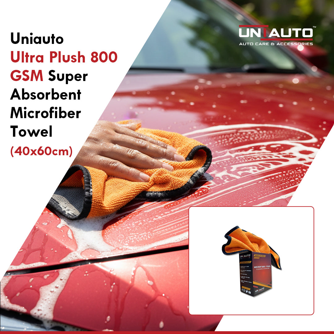 If you're looking for one of the most effective drying towels that is absolutely safe for your vehicle's paint, then the UNIAUTO Super Absorbent Microfiber Towel is your answer. Our microfiber Towel for car has the satisfying weight that many people love in drying towels. It's able to hold multiple times its own dry weight, in water and features a hemmed (hidden) edge, so there is no unused area of this towel, making it fully absorbent from start to finish.